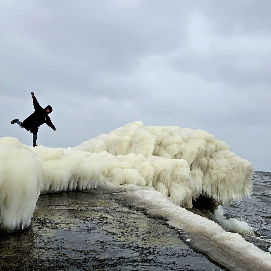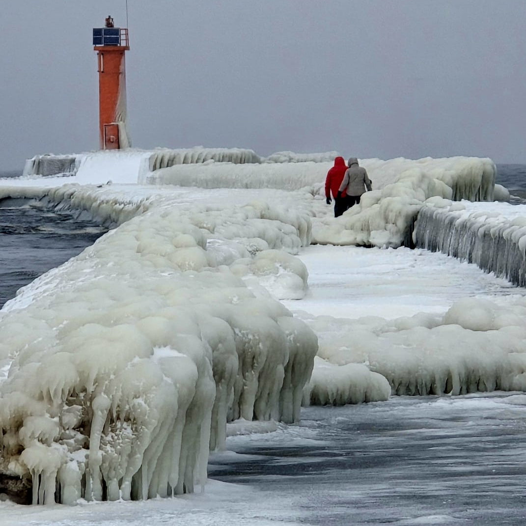 Apledojošā mola un pludmales ledus veidojumu apskate