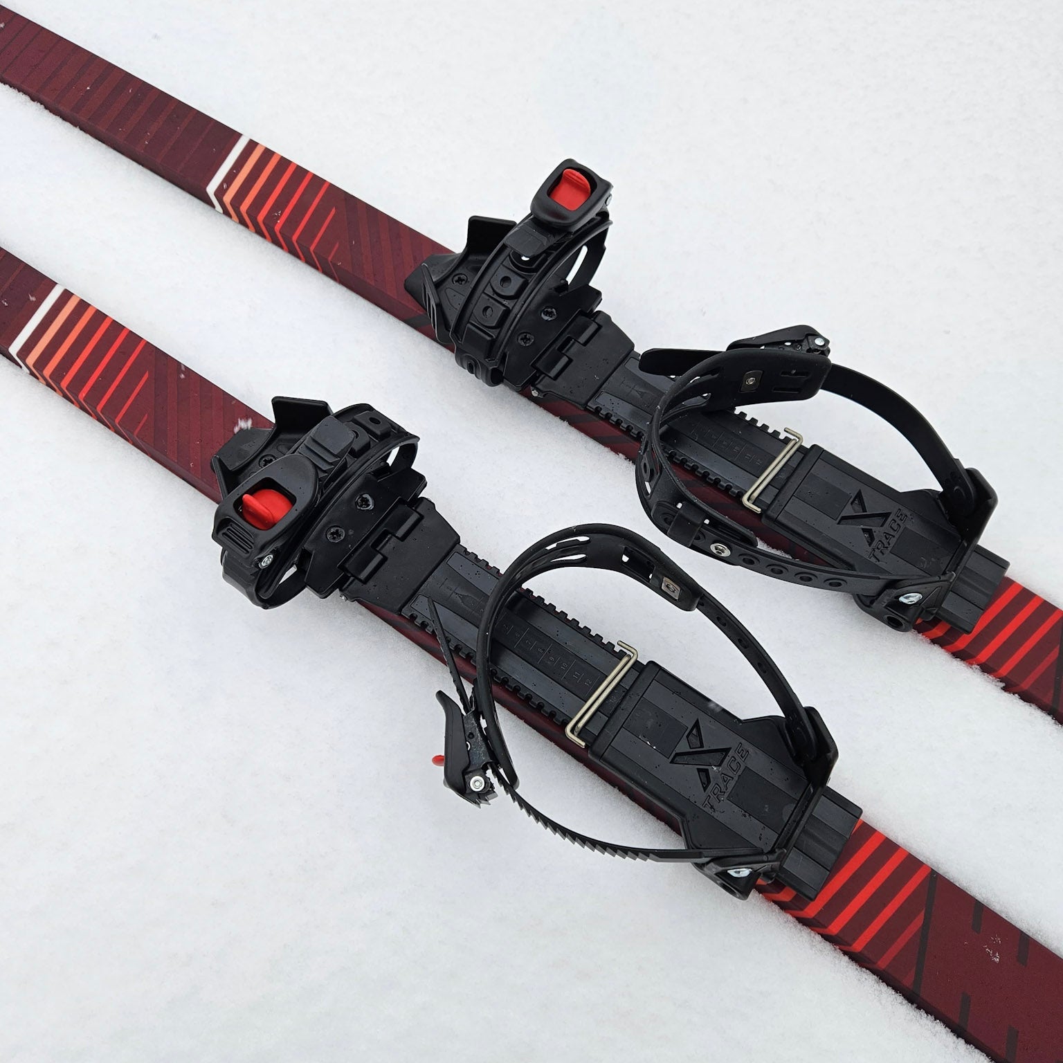 Slēpju komplektā ietilpst: pārgājienu slēpes ar universiālajiem stiprinājumiem un regulējamām nūjām.